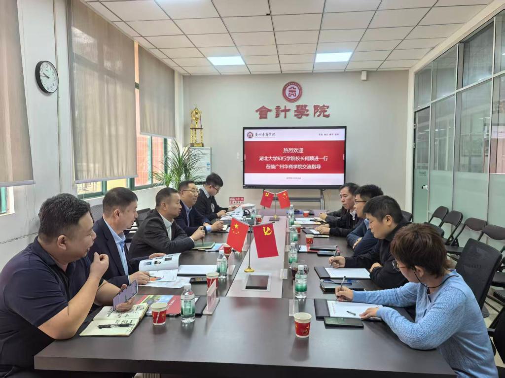 2025年11月14日,湖北大学知行学院校长何顺进,教务处长易有明,太阳成集团tyc122cc院长刘容一行4人在正誉企业管理(广东)集团股份有限公司董事长鲁银花、副总裁熊浩等陪同下来我校交流,122cc太阳集团副校长余家军,太阳成集团tyc122cc院长姚凤民等热情接待了何顺进校长一行。