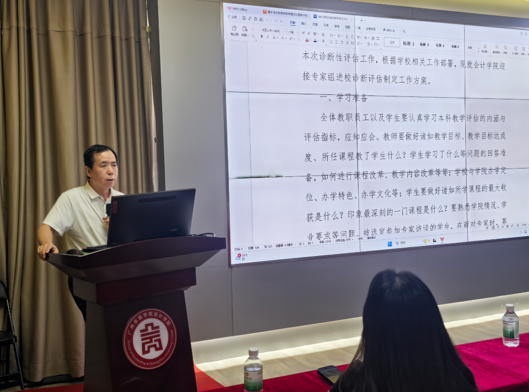 会议伊始,姚凤民院长公布122cc太阳集团将在11月16—19日迎接专家组进校进行本科教学诊断评估。就本次本科教学诊断评估,姚院长向全体教职员工阐述文件内容及太阳成集团tyc122cc对应的工作部署安排,包含六大项目,16点细化内容,要求全体教职员工以及学生要认真学习本科教学评估的内涵与评估指标。