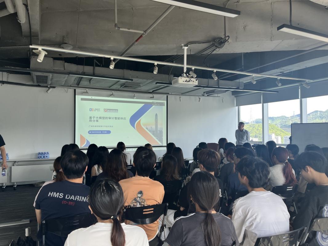 随后,建广数科多位业务骨干带来三场干货满满的主题分享,为同学们打开了数字化审计的实践窗口。首先大客户服务部负责人黄仲以《建广数科中国领先的产业数字化转型赋能者》为题,解析了企业在数字化转型领域的核心技术与全链条服务能力,结合服务制造、金融等行业的标杆案例,展示如何通过数字化工具破解企业运营痛点,让同学们对产业数字化转型的实际价值有了更深入的理解。