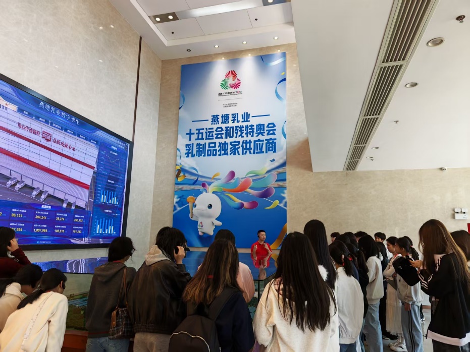 作为华南地区乳制品行业的领军企业,燕塘乳业拥有先进的智能化生产线和完整的全产业链布局。师生们依次参观了全自动智能低温生产线、常温生产线、生产养殖数智监测中心、实验中心及党建引领中心,深入了解企业如何通过自动化、数字化手段提升生产效率与产品质量,同时也引发了对税收政策如何影响企业技术路径选择的思考。